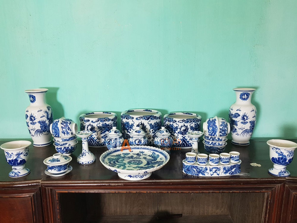 Bộ đồ thờ gia tiên gốm sứ 197×87