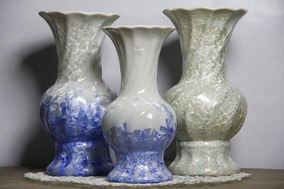 Christmas vase SNOW Glaze 9.84" and 11.22" ,ceramic flower vase,handmade vase,hand painted vasevintage, wedding vases, pottery vase by bachthophuong