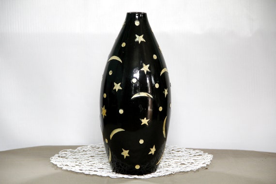 Lacquer, mosaic Pearl shell start, moon Vase Ceramic Core 10.03", Chirsmas vase,ceramic vase,flower vase,pottery vase, bud vase,vintage vase by bachthophuong