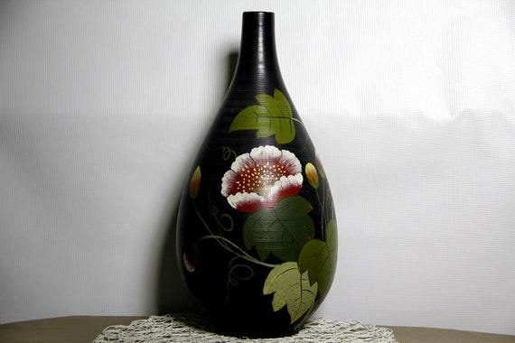 Lacquer Vase Ceramic Core Drawing Rose 16.92" , Chirsmas vase,ceramic vase,flower vase,pottery vase, bud vase,vintage vase by bachthophuong