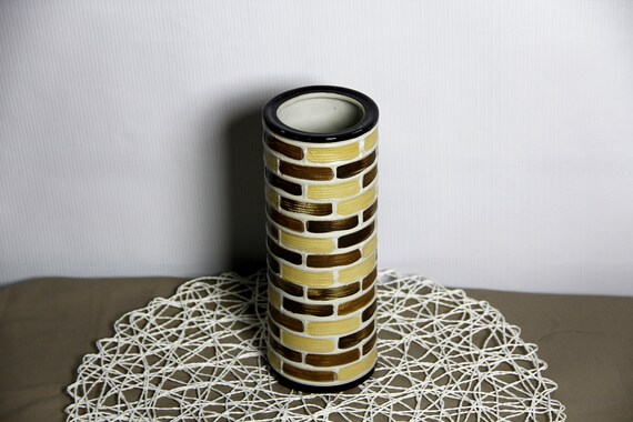 Rough glaze Cylinder Vase brick yellow, brown 8.66", Chirsmas vase,ceramic vase,flower vase,pottery vase,bud vase,vintage vase,handmade vase by bachthophuong